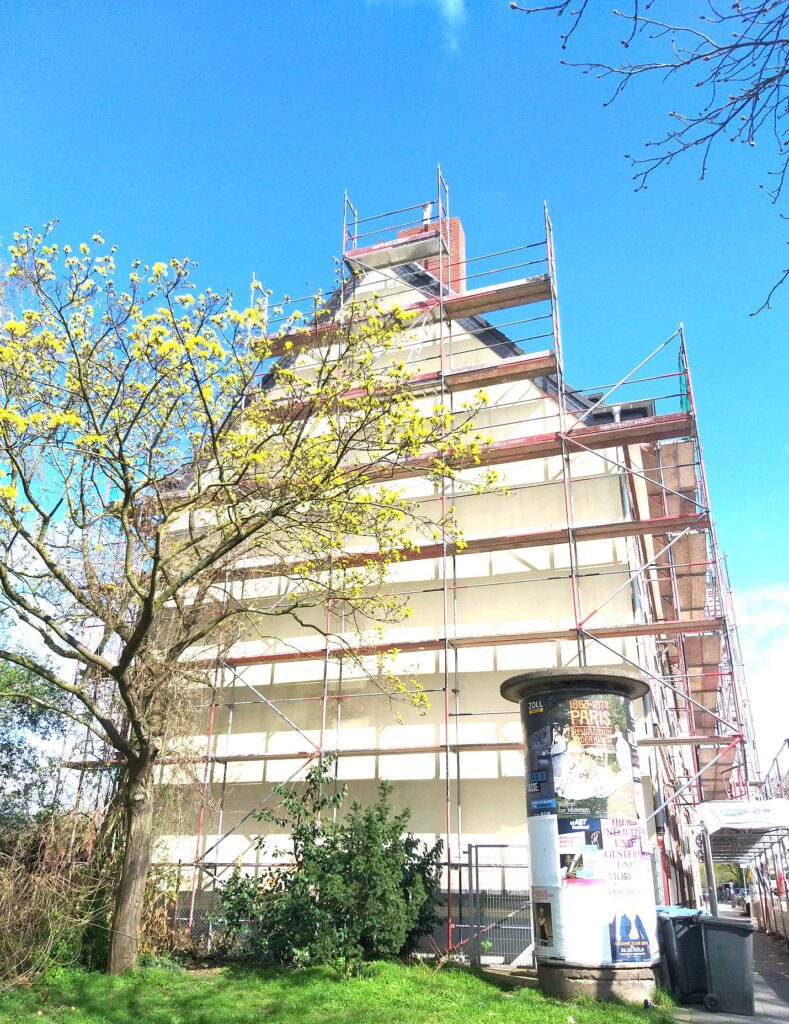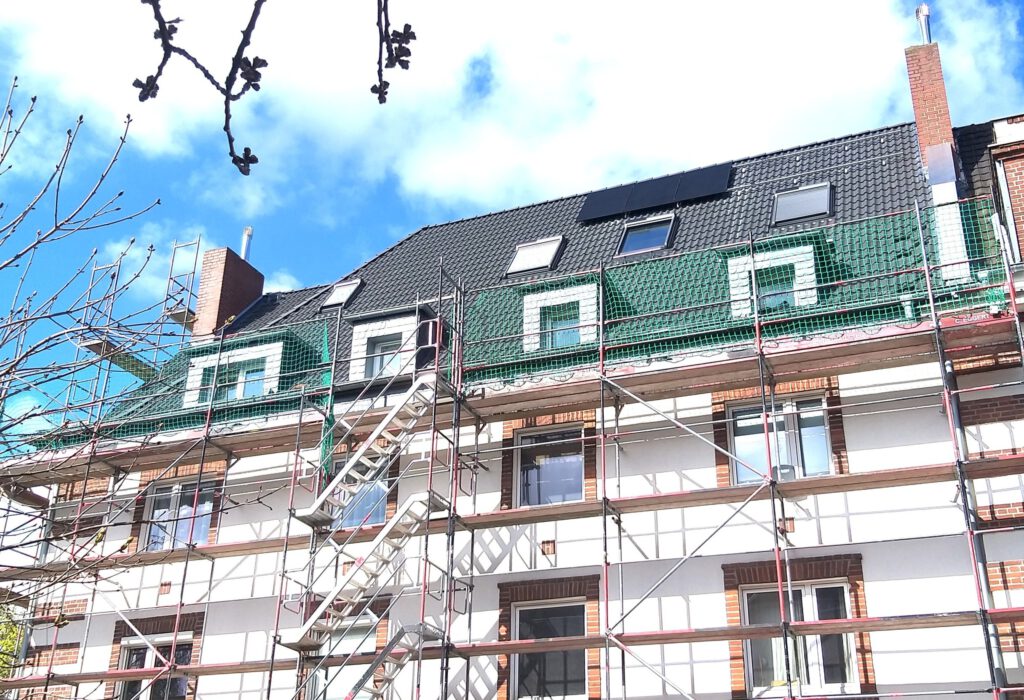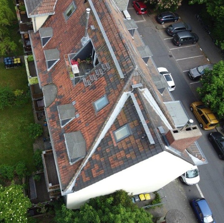 Erneuerung des Daches eines Mehrfamilienhauses mit ausgebautem Dachgeschoss von außen mit einer Wohneigentümergemeinschaft. Zuschüsse über das bafa, Bundesförderung für effiziente Gebäude BEG EM, und Gebäudesanierung, klimafreundliches Wohnen der Stadt Köln. 16 cm Aufsparrendämmung WLG 023 als Einzelmaßnahme und Baubegleitung.
