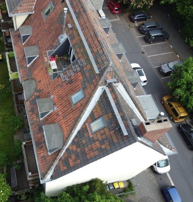 Erneuerung des Daches eines Mehrfamilienhauses mit ausgebautem Dachgeschoss von außen mit einer Wohneigentümergemeinschaft. Zuschüsse über das bafa, Bundesförderung für effiziente Gebäude BEG EM, und Gebäudesanierung, klimafreundliches Wohnen der Stadt Köln. 16 cm Aufsparrendämmung WLG 023 als Einzelmaßnahme und Baubegleitung.